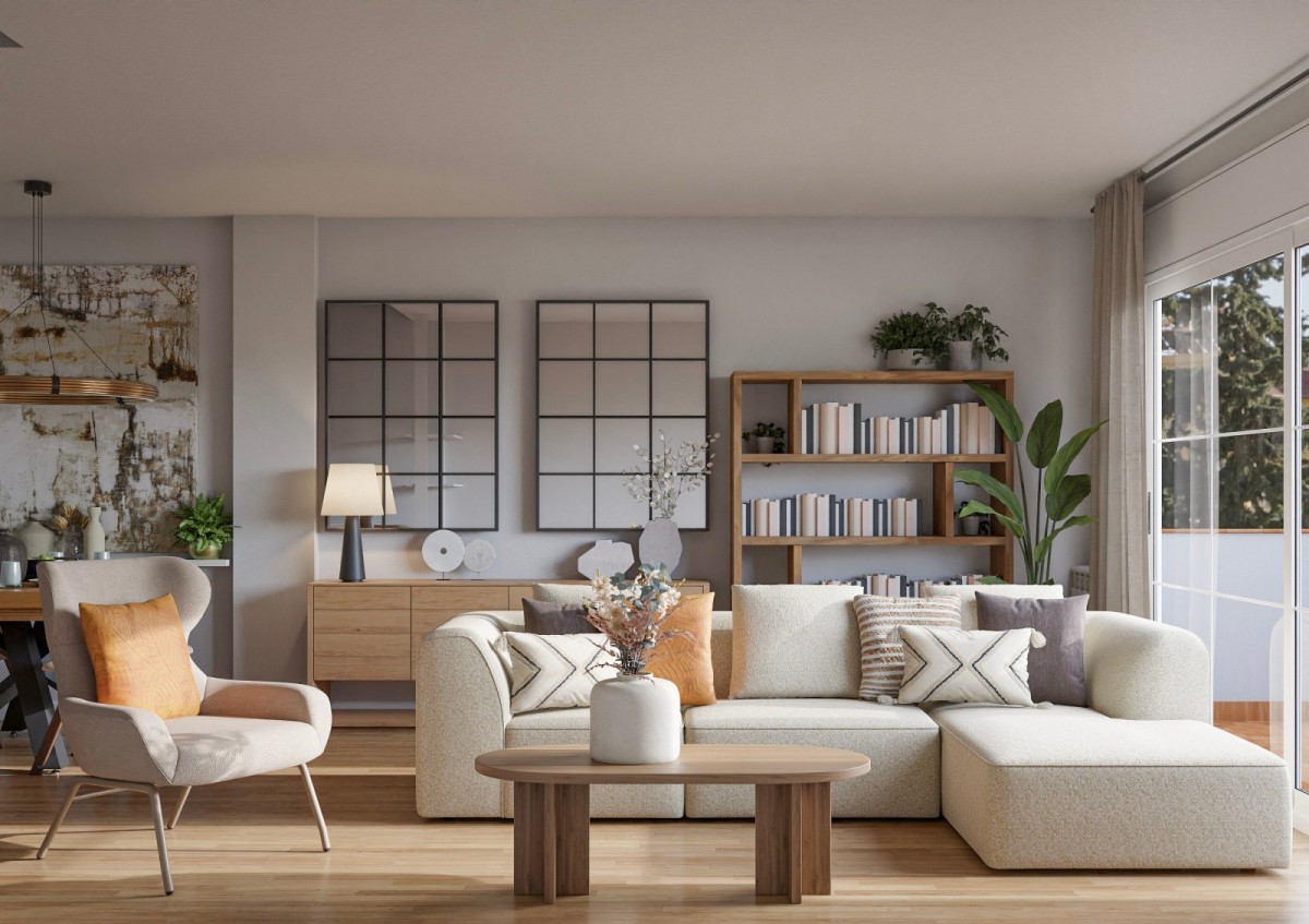 La paleta que viene trabaja sobre arenas delicadas, arcillas profundas, verdes oliva y azules con un punto de gris que los vuelve habitables. Estas familias de color conviven de forma natural con maderas tostadas y con piedras de veteado suave, lo que permite diseñar interiores silenciosos, con contraste moderado y transiciones agradables entre zonas. En mobiliario aparecen bordes suavizados, respaldos curvos y perfiles que abandonan la rigidez, y en muros se instalan relieves discretos, celosías y tramas que la luz tangencial resalta durante el día. La clave no está en acumular elementos, sino en dejar respirar a cada material para que diga lo suyo sin gritar.